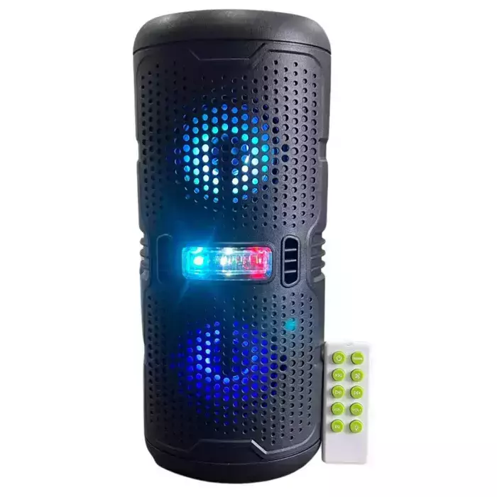 Com um jogo de luzes integrado, a caixa de som adiciona um toque de diversão e estilo à sua experiência auditiva, criando uma atmosfera envolvente para qualquer ocasião. E com o controle remoto incluso, você pode controlar facilmente todas as funções da caixa de som sem sair do lugar.